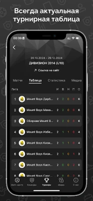 Календарь игр, турнирные таблицы и многое другое - уже в мобильном приложении MOUNT BOYS. Простота и удобство использования, ключевая информация всегда "под рукой". Теперь следить за игрой любимой команды в режиме онлайн - легко и удобно прямо в мобильном приложении на смартфоне! Оцените сами, расскажите своим партнерам по команде и болельщикам.