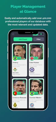 5. Add players using GLOBAL database: Don't waste time and add any professional player from the global database to your portfolio. Basic and contract data are entered automatically.