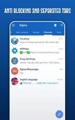 Sigma Messenger is a free messaging app that uses Telegram API and added some extra features to the official Telegram app which the most important is a very strong Anti Blocking system for some countries which are blocking Telegram and: